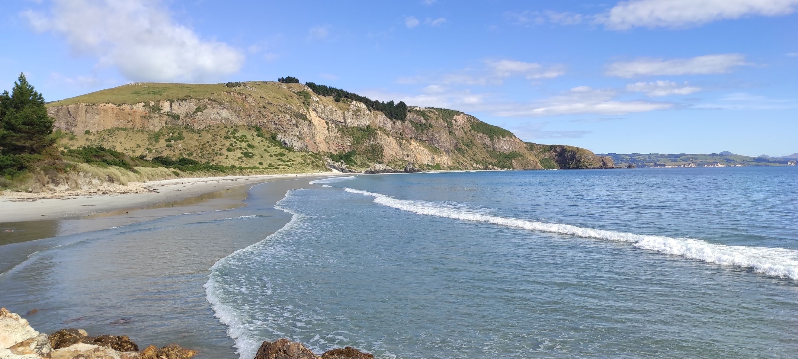 By walking along the road towards the beach, I came to the Warrington Domain which sits behind the sand dunes of the beach and is a popular place for families during the summer. There is also freedom camping available at the domain.